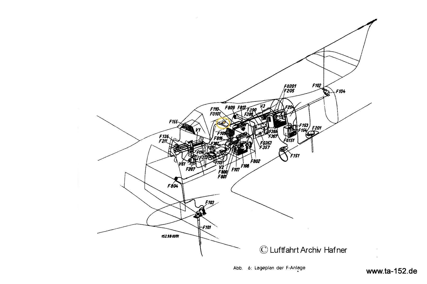 Lageplan der F-Geräte mit Sitz des Ln Halter und Einstellschüssel Ln 27854 (Telefunken) für das FuG 16 ZY