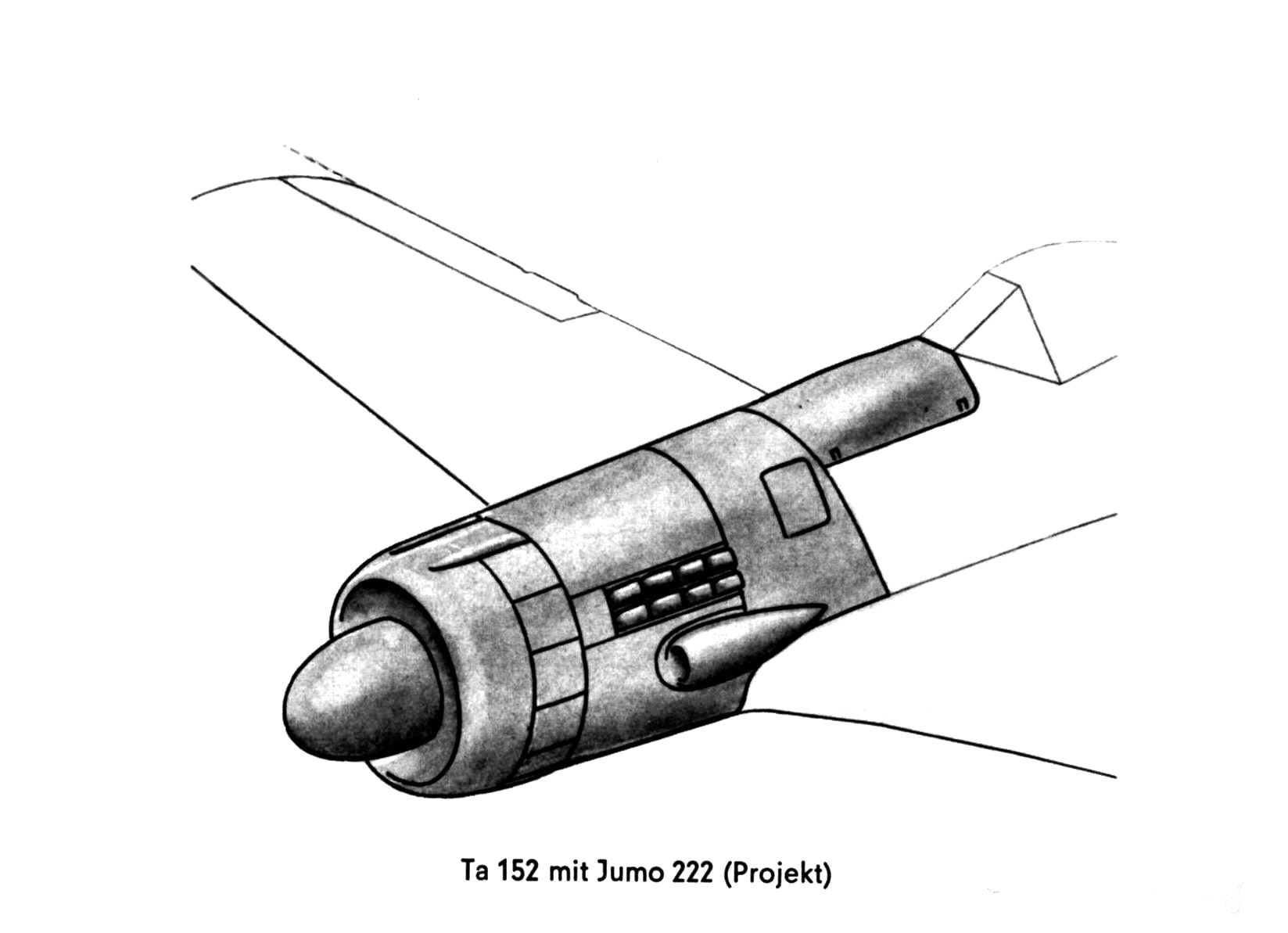 - Einbau des Jumo 222 für die Ta 152 (H), Serie ab Mai 1945